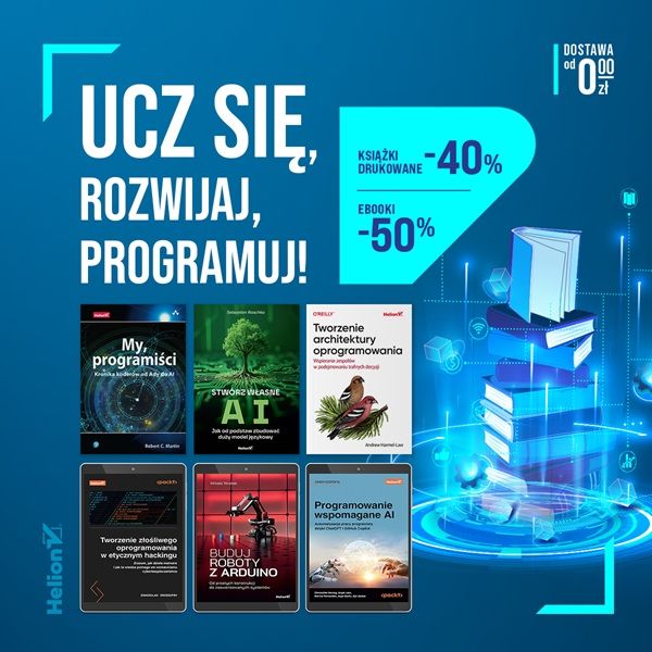 |  Technologia nie stoi w miejscu. A Ty? 🤔 W branży IT każda nowa umiejętność to realna przewaga: lepsze projekty, wyższe zarobki i większe możliwości rozwoju kariery 📈 Zaintrygowany(a)? Teraz masz świetną okazję, by zdobywać wiedzę z najlepszych źródeł - od podstaw programowania, przez zaawansowane algorytmy i architektury systemów, po sztuczną inteligencję, analizę danych i DevOps. Zajrzyj niżej 👇 📘 Książki drukowane masz taniej o 40% 📱 Ebooki z rabatem 50% PREMIERA! 🧠  Inżynieria dużych modeli językowych. Podręcznik projektowania, trenowania i wdrażania LLM 🤖 Wraz ze wzrostem popularności dużych modeli językowych rośnie zapotrzebowanie na specjalistów, którzy potrafią je skutecznie wdrażać w rzeczywistych rozwiązaniach. Inżynieria LLM to szeroki zestaw zadań, wymagający unikalnego połączenia wiedzy z wielu dziedzin. Szczególnie istotne okazuje się tu podejście MLOps, które znacząco zwiększa szanse na sukces w projektach opartych na modelach językowych. Ten obszerny przewodnik pokaże Ci, jak stosować najlepsze praktyki w pracy z LLM. Znajdziesz tu omówienie kluczowych koncepcji, praktyczne techniki i porady ekspertów z zakresu inżynierii danych, dostrajania i oceny modeli, optymalizacji wnioskowania, a także budowania skalowalnych potoków przetwarzania. Krok po kroku prześledzisz, jak zrealizować konkretny produkt, integrując różne aspekty inżynierii LLM i metodologię MLOps. Dowiesz się, jak zbierać i przygotowywać dane, dostrajać modele do specyficznych zastosowań, zwiększać ich wydajność i wdrażać rozwiązania oparte na technice RAG. Najciekawsze zagadnienia: ✅ niezawodne potoki danych i zarządzanie cyklem trenowania modeli LLM ✅ tworzenie i udoskonalanie modeli językowych w praktyce ✅ podejście MLOps - koordynacja komponentów i monitorowanie promptów ✅ nadzorowane dostrajanie i ewaluacja modeli ✅ wykorzystanie narzędzi chmurowych (na przykład AWS) w skalowalnych wdrożeniach ✅ praktyczne zastosowanie techniki retrieval-augmented generation (RAG) Pozostałe NOWOŚCI 🆕👇 Zobacz także 👇  | Sprawdź naszą nową aplikację | | | |